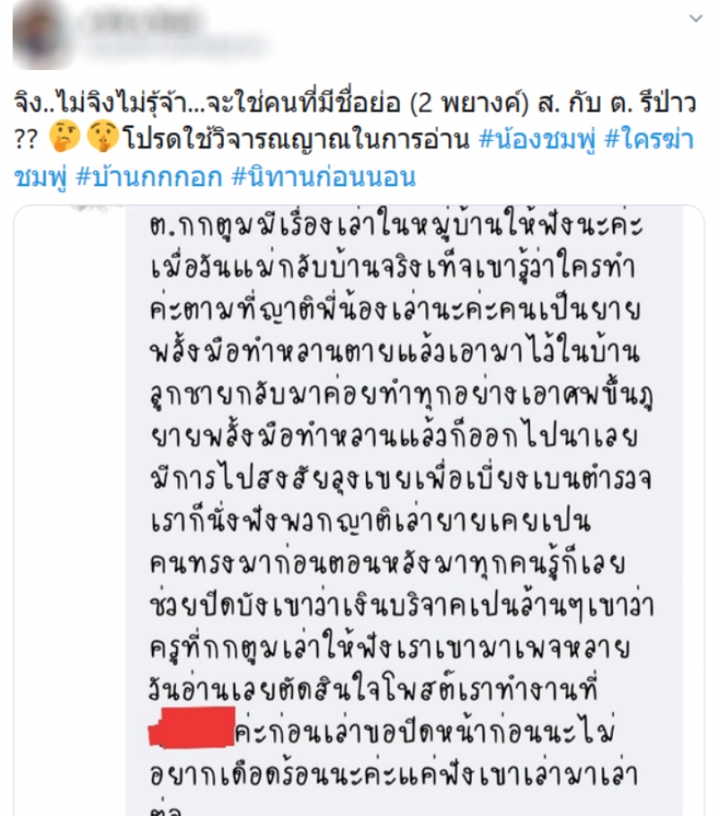 กลายเป็นประเด็นขึ้นมาอีกจนได้สำหรับเรื่องราวที่แชร์กันว่อนโซเชี่ยล ว่าคนร้ายที่ทำน้องชมพู่ที่แท้จริงเป็นคนนี้ คนที่หลายๆคนอาจจะคาดไม่ถึง แต่ทั้งนี้เป็นเพียงเรื่องราวที่แชร์กันในโลกโซเชี่ยลเท่านั้น ไม่ได้หมายความว่าจะเป็นเรื่องจริงแต่อย่างใด