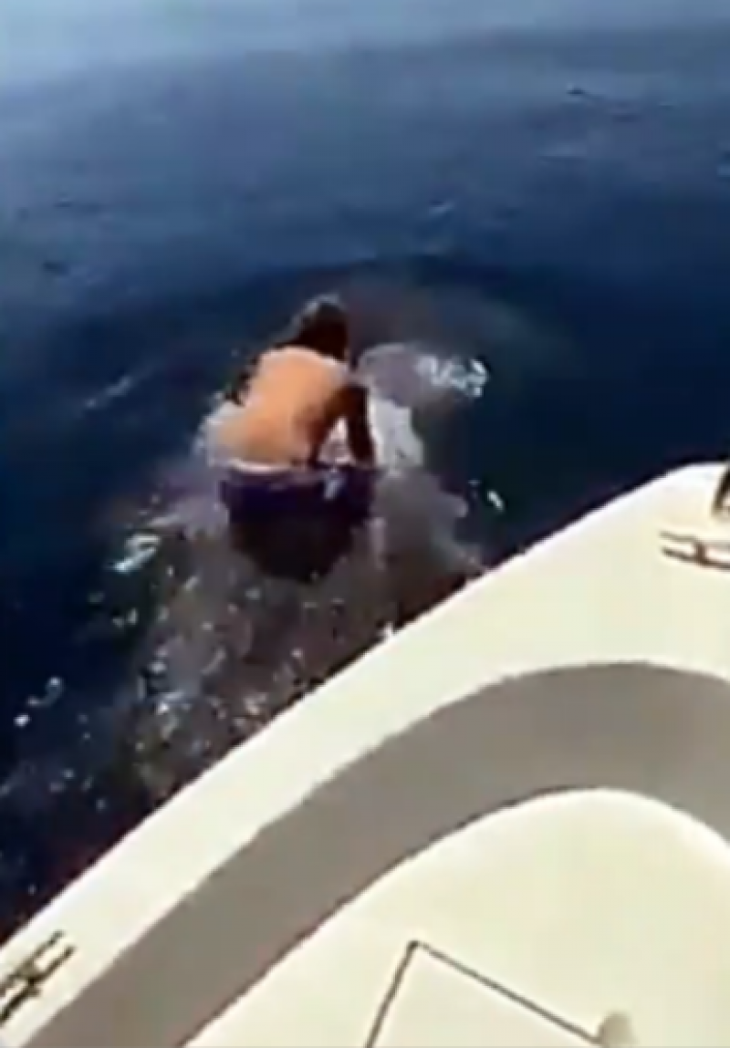 วิจารณ์สนั่นทั่วโลก หนุ่มกระโดดขี่หลังฉลามวาฬ