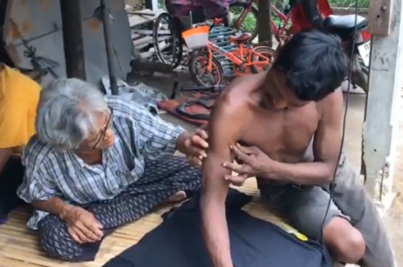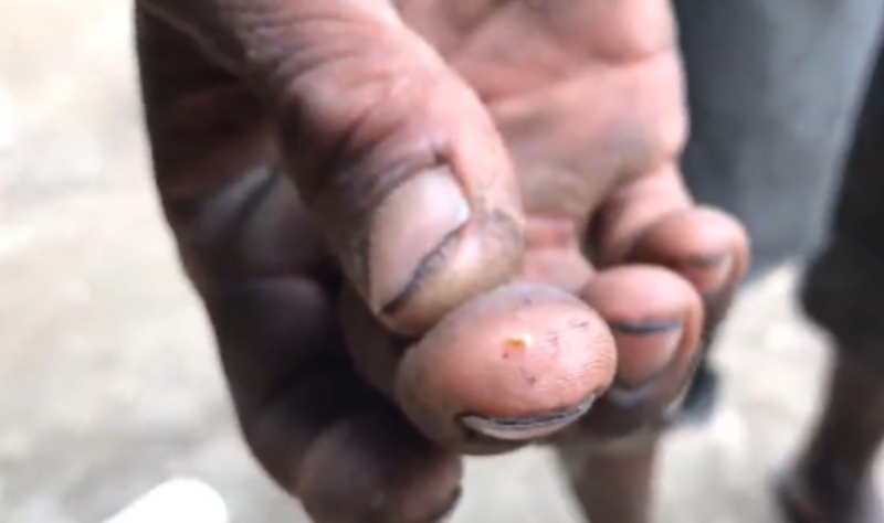 ด้านนาย เกียรติศักดิ์ บอกว่า มีอาชีพหาปลาตามทุ่งนา ต้องเดินลุยไปตามหญ้าและป่าที่ทึบ เริ่มมีอาการคันตามตัวมานานนับปี มีตุ่มขึ้นเป็นคล้ายเม็ดสิวทั้งตัว ช่วงกลางคืนจะมีแมลงตัวเล็กๆออกมาจากตามร่างกายทำให้เจ็บปวดมากถึงกับนอนไม่หลับ บางครั้งมีหนอนตัวเล็กๆสีขาวมุดออกมาจากปากที่เป็นแผลจำนวนมาก หากแผลถูกน้ำหรือเปียกชื้น แมลงเหล่านี้จะมุดโผล่ขึ้นมา สร้างความทุกข์ทรมานใจให้อย่างมาก เคยไปหาหมอที่รพ.แสวงหา แต่กลับได้เพียงยามาทาแก้คันและยานอนหลับเท่านั้น