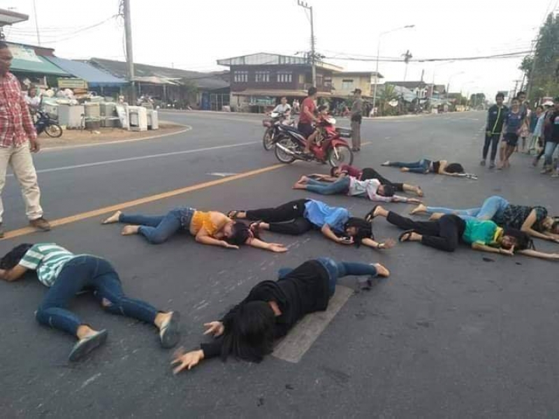 ชาวบ้านตกใจ เห็นกลุ่มวัยรุ่น ลงไปนอนกองกับพื้น