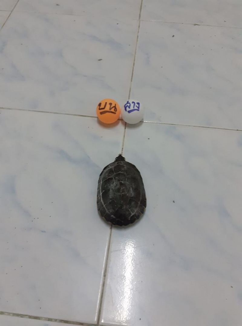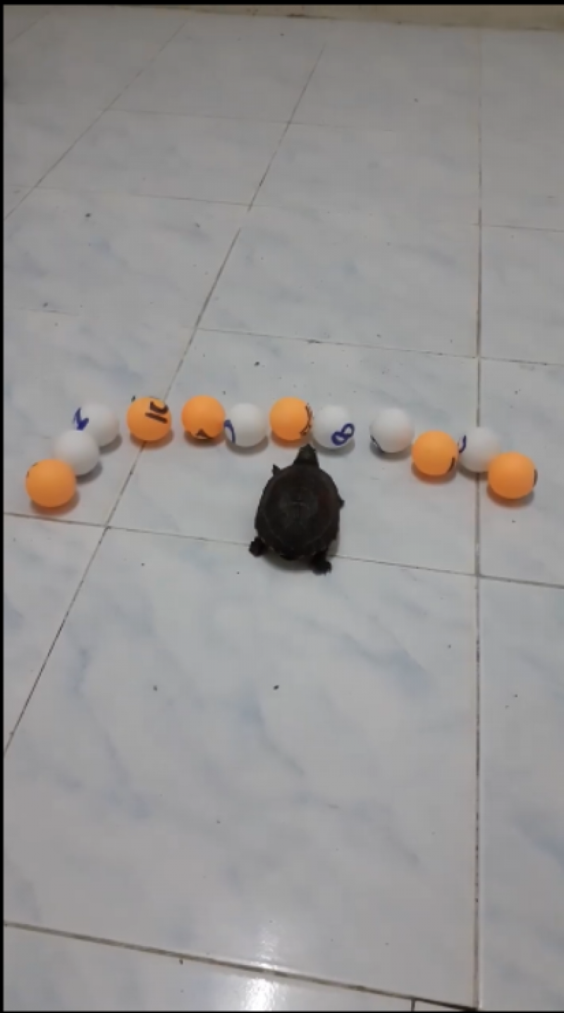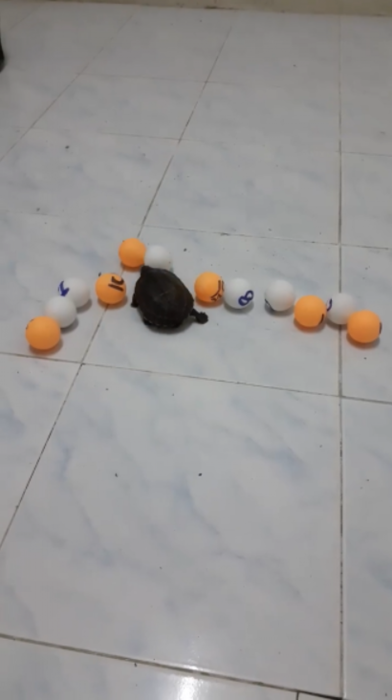 หนุ่มเสี่ยงทาย ให้เต่าวิ่งชนลูกปิงปอง
