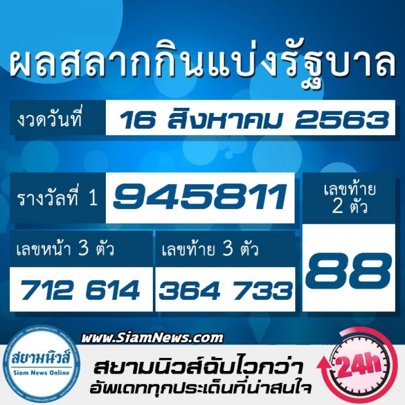 p>ผลการออกรางวัลประจำวันที่ 16 ส.ค. 63 ที่ผ่านมา