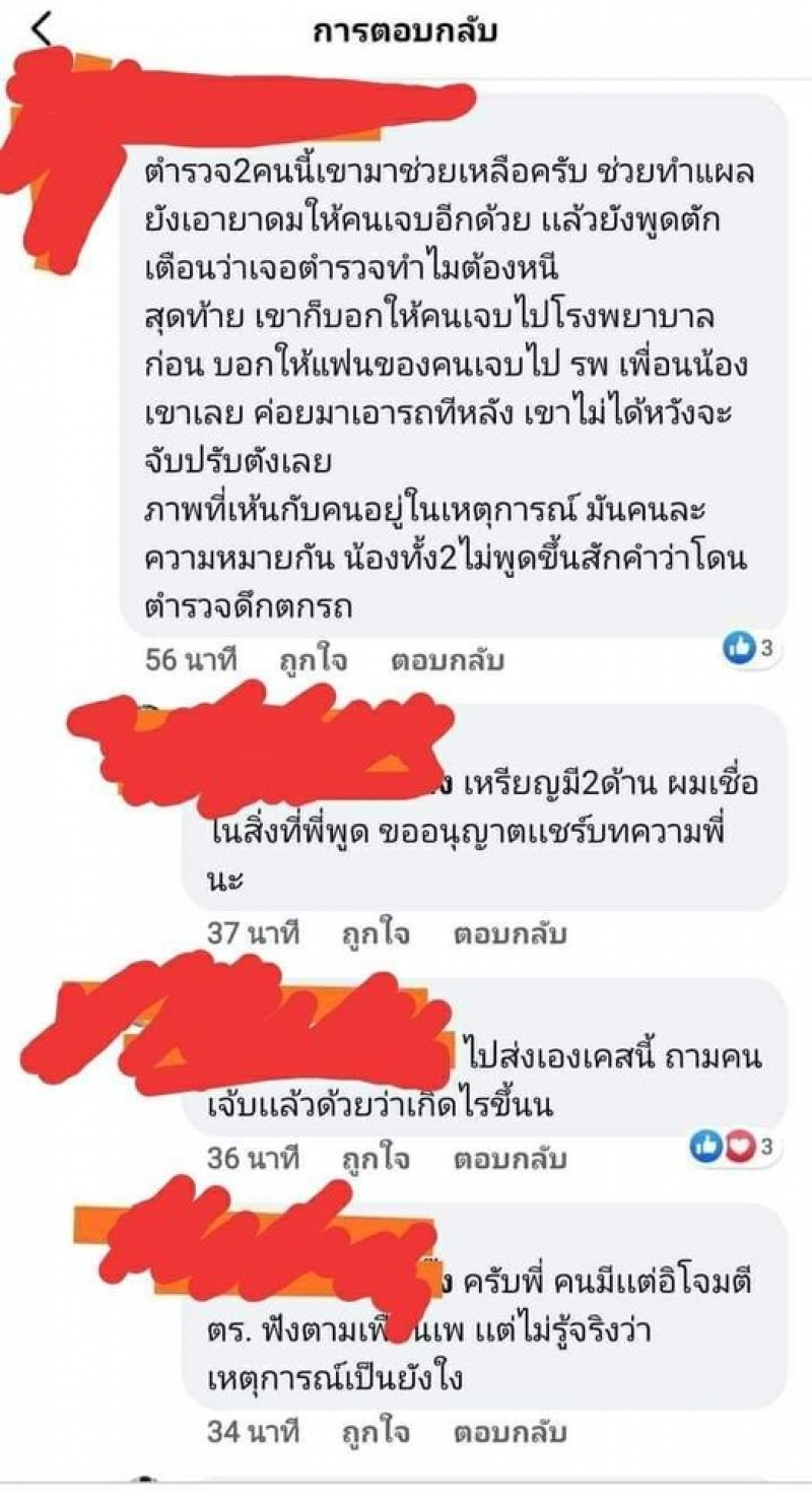 บ้างก็บอกว่าสิ่งที่โพสต์นั้นไม่เป็นความจริง ตำรวจเข้าไปช่วยต่างหาก อีกฟากก็ด่าตำรวจซะเละเทะไม่มีชิ้นดีเลย