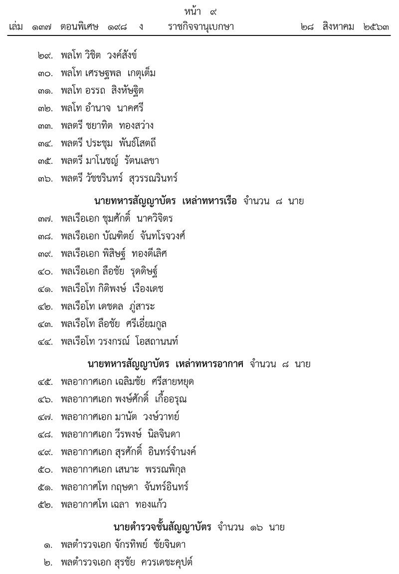 ทั้งนี้ ในรายชื่อ 68 นาย มี พลเอก พรพิพัฒน์ เบญญศรี นายทหารสัญญาบัตร เหล่าทหารบก พลเอก อภิรัชต์ คงสมพงษ์ ผบ.ทบ. นายทหารสัญญาบัตร เหล่าทหารบก พลเรือเอก ลือชัย รุดดิษฐ์ ผบ.ทร. นายทหารสัญญาบัตร เหล่าทหารเรือ, พล.อ.อ.มานัต วงษ์วาทย์ ผบ.ทอ. นายทหารสัญญาบัตร เหล่าทหารอากาศ และพล.ต.อ.จักรทิพย์ ชัยจินดา ผบ.ตร. นายตำรวจชั้นสัญญาบัตร ด้วย