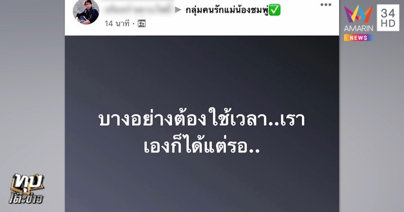 กรณีผู้ใช้เฟซบุ๊ก นรินทร์ หลาบโพธิ์" น้าของน้องชมพู่ โพสต์ข้อความลงใน กลุ่มคนรักแม่น้องชมพู่ โดยข้อความระบุว่า บางอย่างต้องใช้เวลา เราเองก็ได้แต่รอ