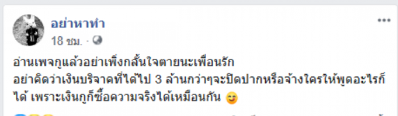 และอีกกรณีที่เพจ อย่าหาทำ ระบุว่า ทางครอบครัวน้องชมพู่ได้รับเงินบริจาค 3 ล้านบาท ด้านนางสาวิตรี วงศ์ศรีชา แม่ของน้องชมพู่ ให้ข้อมูลว่า ตนยืนยันว่าไม่เคยเปิดรับบริจาค และเงินจำนวน 3 ล้านบาทไม่มีจริง อีกทั้งเคยพูดถึงเรื่องนี้ และเคยแสดงความบริสุทธิ์อย่างชัดเจนไปแล้ว จึงไม่อยากจะพูดอะไรเกี่ยวกับเรื่องนี้อีก รวมถึงไม่ได้จ้างใครพูดหรือให้เป็นพยานฝ่ายตนอีกด้วย เพราะถ้าหากได้เงินจริง ๆ ก็คงไม่ต้องกรีดยางขายแล้ว