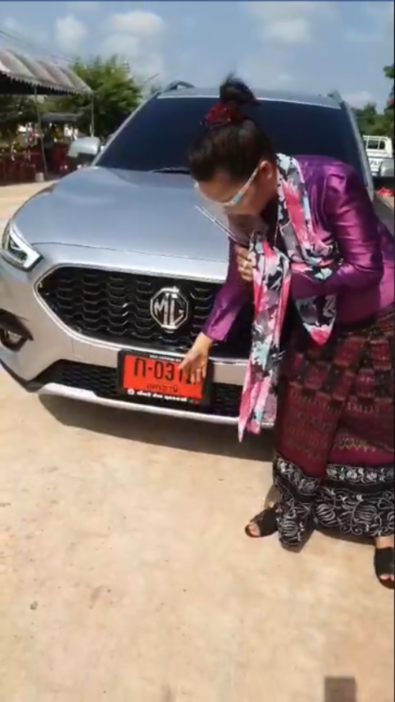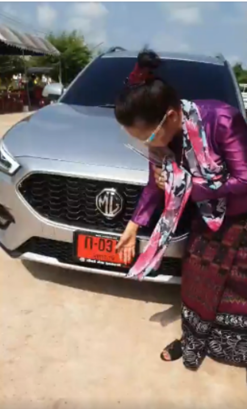 พี่นางเดินไปที่รถคันดังกล่าว เคาะที่ทะเบียนพร้อมพูดว่า สาธุ 3 ครั้ง