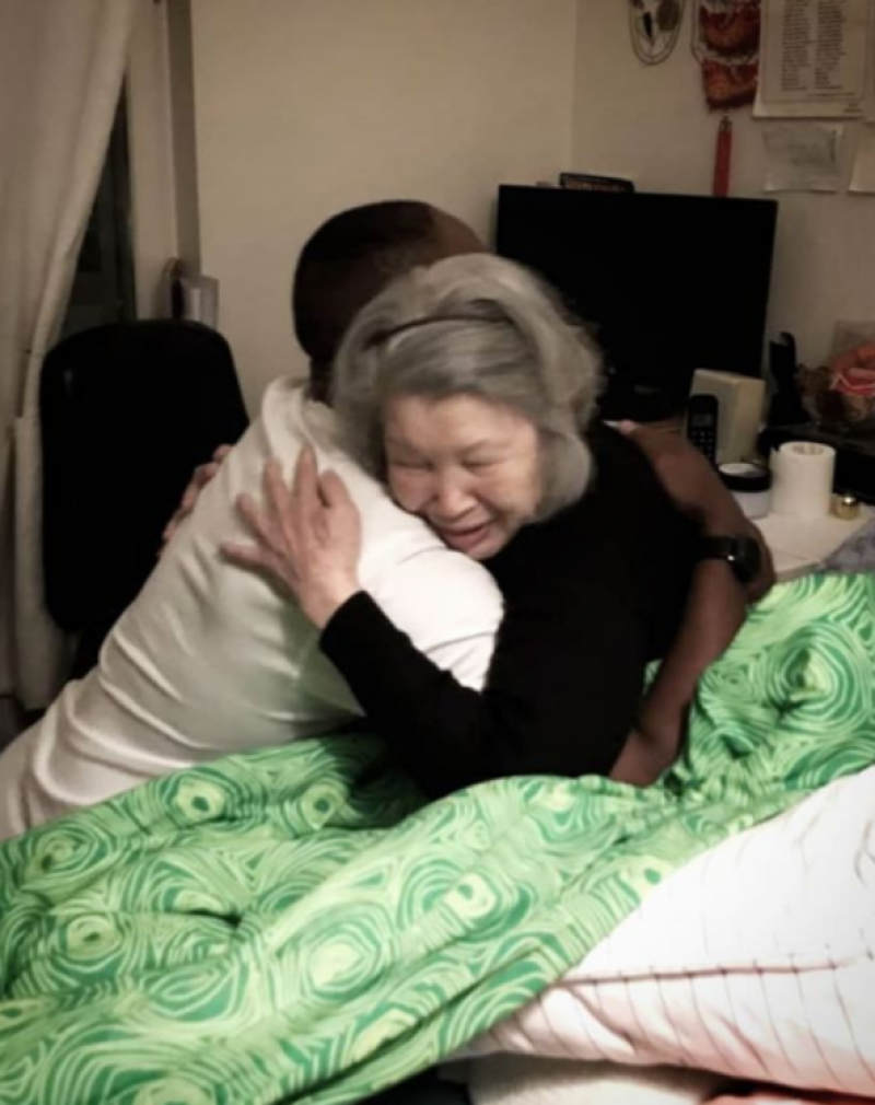 เป็นภาพของคุณรัศมีแขที่กอดกับคุณย่าเหมือนการเป็ฯขอกำลังใจ