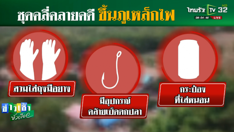 ตำรวจทุกนายสวมถุงมือย าง มีอุปกรณ์คล้ายเบ็ดตกปลา มีกระป๋องใส่หนอน อยู่ที่บริเวณท้ายรถ ซึ่งก็ไม่รู้ข้อมูลแน่ชัด ว่าตำรวจทำไมต้องแต่งกายแบบนี้ ทำไมต้องเอาของเหล่านี้ขึ้นภูเหล็กไฟ เอาไปทำอะไร สมมุติ หรือพิสูจน์ เหตุการณ์อะไรหรือเปล่า ทำไมต้องใส่ชุดสีดำมีทั้งแขนสั้นแขนยาว