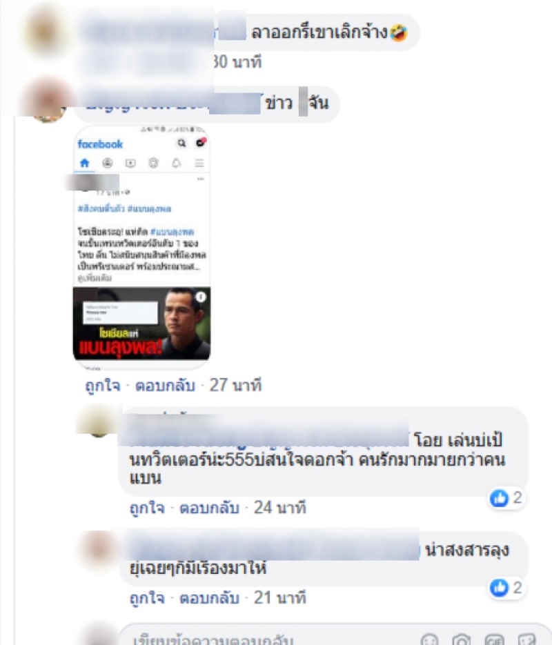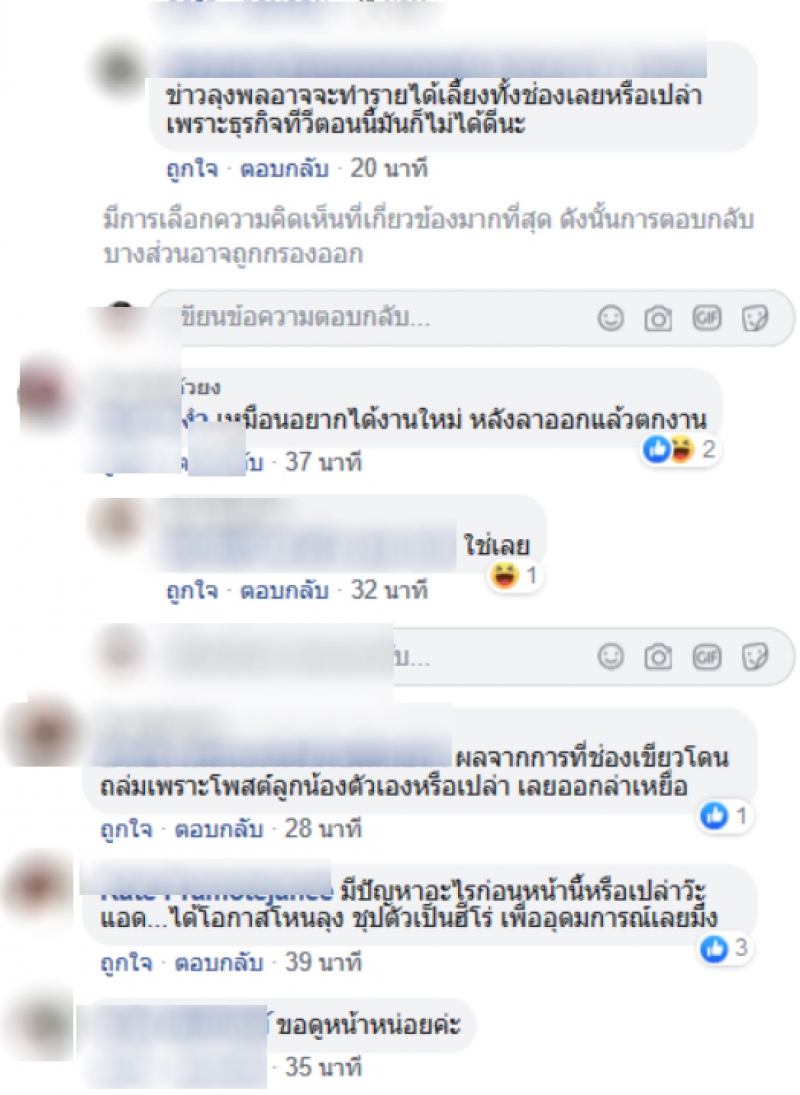 ล่าสุดหลังโพสต์ดังกล่าวได้ถูกส่งต่อออกไปเป็นจำนวนมาก บางส่วนชื่นชมในความรับผิดชอบต่อสังคม แต่บางส่วนเห็นว่าทำไมไม่เดินออกไปอย่างเงียบๆ แต่กลับทิ้งบอมไว้ให้กับทางช่องที่ตัวเองก็เคยทำมาหากินมาก่อน ซึ่งไม่สมควรเพราะหลังจากนี้ไปก็ยังต้องทำงานกับสื่ออยู่ดี