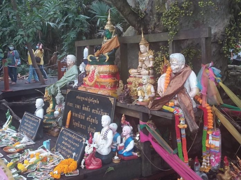 วันที่ 10 ก.ย. ที่บริเวณต้นมะเดื่อยักษ์ ที่ชาวบ้านเชื่อว่าเป็นขุมทรัพย์พ่อปู่ศรีสุทโธและแม่ย่าศรีปทุมมา วังนาคินทร์เกาะคำชะโนด บ้านโนนเมือง หมู่ 11 ต.บ้านม่วง อ.บ้ารดุง จ.อุดรธานี โดยเกาะคำชะโนดก่อนวันหยุด นักท่องเที่ยวยังเดินทางมาหนาตา เพื่อกราบไหว้ขอพรจากพ่อปู่แม่ย่าก่อนวันหยุด โดยทุกคนต้องผ่านการคัดกรองมาตรการเฝ้าระวังการแพร่เชื้อไวรัสโควิด 19 ยังเข้มทุกคนต้องใส่หน้ากากอนามัย
