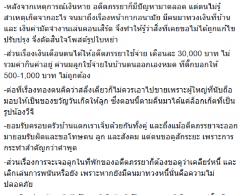 เมื่อวันที่ 11 ก.ย.63 เพจ SpringNews ได้โพสต์ข้อความระบุว่า สรุปให้ หนุ่ม ศรราม เปิดใจครั้งแรก ชีวิตคู่กับอดีตภรรย า ติ๊ก บิ๊กบราเธอร์ แต กหักเพราะเรื่องเงิน หนุ่ม ศรราม ยอมรับว่าเลิก ติ๊ก บิ๊กบราเธอร์ ตั้งแต่ต้นปีเมื่อจับได้ว่าอดีตภรรย านำ ATM ไปกดเงิน ตั้งแต่คบกันเป็นแฟน ติ๊กมีปัญหาอะไร ตนก็ให้ความช่วยเหลือเท่าที่มีกำลังความสามารถช่วยได้ ตนไม่รู้ว่าอดีตภรรย าติดการพนั นตั้งแต่เมื่อไหร่ แต่เมื่อรู้ว่าติดก็ขอให้หยุดอย่าไปยุ่งอีก