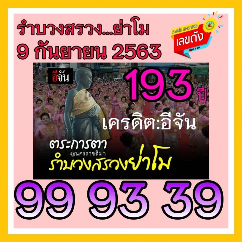 เกลี้ยงแผง เลขทำบุญเมืองโคราช ย่าโม งวด 16 กย 63