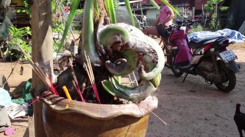 โดยนางชิ้น สุดแสวง อายุ55ปี เจ้าของต้นมะพร้าว เปิดเผยว่า ต้นมะพร้าวดังกล่าวได้ล่วงลงมาจากต้นมะพร้าวอีกต้นประมาณ1ปี ตนเองจึงได้นำลูกมะพร้าวไปเพราะไว้ที่ข้างก๊อกน้ำเพื่อจะนำไปปลูก เมื่อวาน10 กันยายน 2563เวลาประมาณ08.00น ตนเองได้เดินไปก๊อกน้ำเพื่อจะนำมะพร้าวไปปลูก ได้เห็นลูกมะพร้าวออกหน่อเหมือนรูปช้างออกมาบริเวณข้างลำต้น รู้สึกแปลกใจและตื่นเต้น