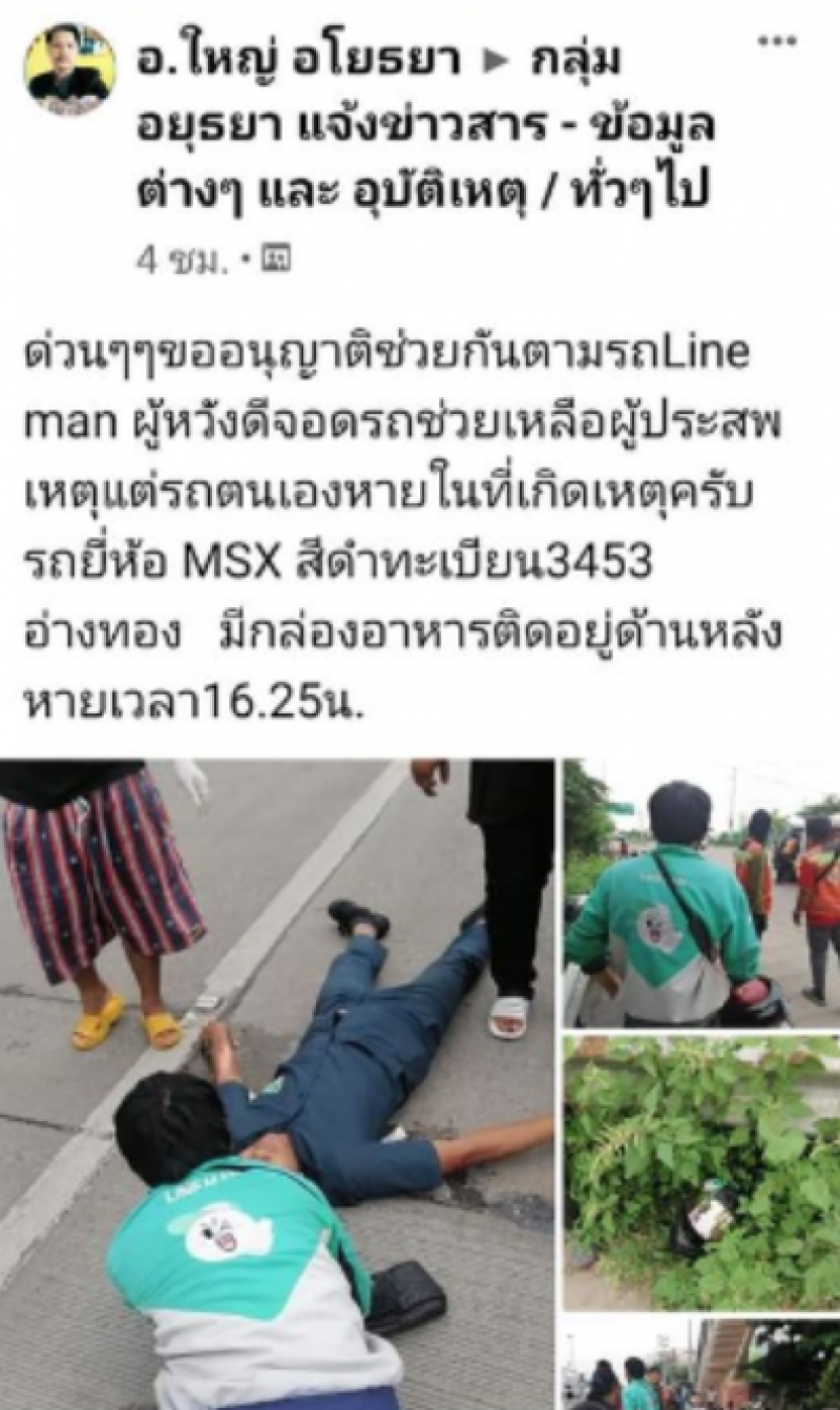 จากกรณีที่ในโลกออนไลน์ ได้ช่วยกันตามหารถของหนุ่ม Line man ที่ถูกมิจฉาชีพแสบขโมยไป หลังจากก่อนหน้านี้ ได้จอดรถช่วยเหลือผู้ประสบอุบัติเหตุ แต่รถตนเองดันหายหายในที่เกิดเหตุ รถยี่ห้อ MSX สีดำทะเบียน 3453 อ่างทอง มีกล่องอาหารติดอยู่ด้านหลัง หายเวลา16.25 น. พิกัดจุดที่หายฝั่งตรงข้ามรพ.ราชธานี