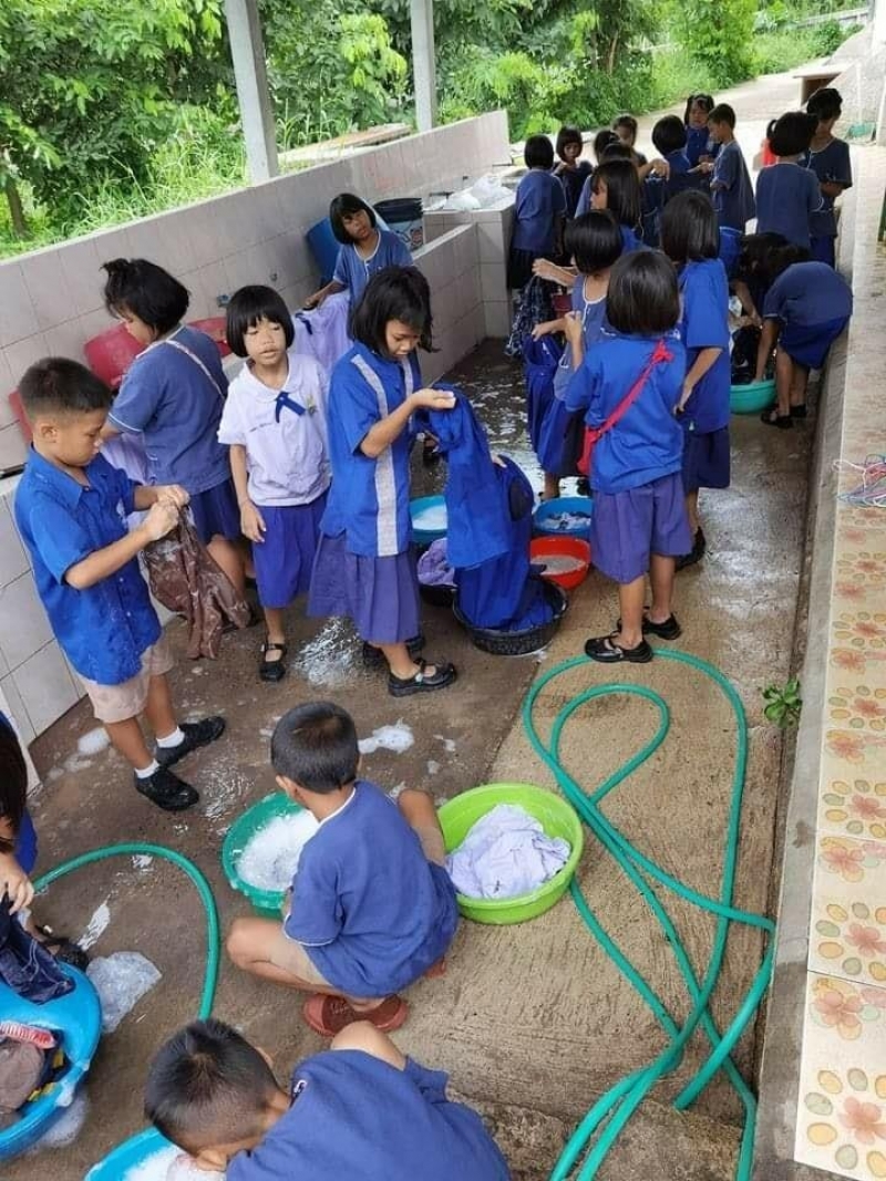 เรียกได้ว่าเป็นอีกหนึ่งภาพน่ารักๆ ที่ถูกพูดถึงอย่างมากในโลกออนไลน์ หลังจากที่เฟซบุ๊ก Ratwadee Inthakanok ได้มีการเผยแพร่เรื่องราวการเรียนการสอน ที่บอกเลยว่ากลายเป็นมิติใหม่แห่งการเรียน โดยการนำเอาทักษะในชีวิตประจำวัน มาสอนให้นักเรียนเรียนลงมือปฏิบัติด้วยตนเอง อย่างเช่นการซักผ้า เพื่อเป็นการฝึกให้นักเรียน สามารถช่วยเหลือตนเองได้ กลายเป็นที่ฮือฮาและชื่นชมในโซเชียล