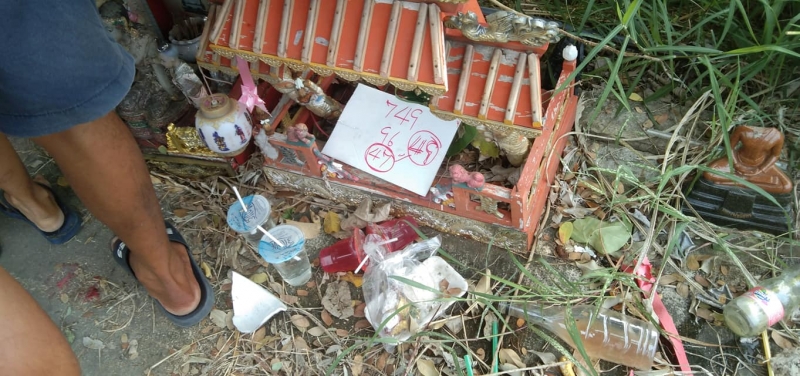 นายสยาม จุลกะทัพพะ อายุ 35 ปี เจ้าของเฟซบุ๊กคนดังกล่าว เล่าว่า เมื่อวานที่ผ่านมาตนขับรถออกจากบ้านในชุมชนเอื้ออาทรบ้านสร้างมาขายของทุกวัน ก็จะเห็นคนจำนวนมากต่างจอดรถขอโชคขอลาภ เพราะศาลแห่งนี้ให้คนถูกหวยถูกลอตเตอรี่มาจำนวนมาก แต่ก็ต้องมาเจอกับงูหลามตัวใหญ่นอนขดอยู่ทำให้ชาวบ้านเชื่อว่าเป็นงูเจ้าที่ เพราะก่อนหน้านี้จะพบงูเห่า ตัวใหญ่อีก 1 ตัวนอนขดอยู่ในศาล ซึ่งชาวบ้านในละแวกถูกกันหลายงวดติด จนเจ้ามือยังเคยมาทุบศาลทิ้งไปแล้วครั้งหนึ่ง แต่ด้วยความศรัทธา คนก็ยังคงมาขอโชคขอลาภกันอยู่จนถึงทุกวันนี้
