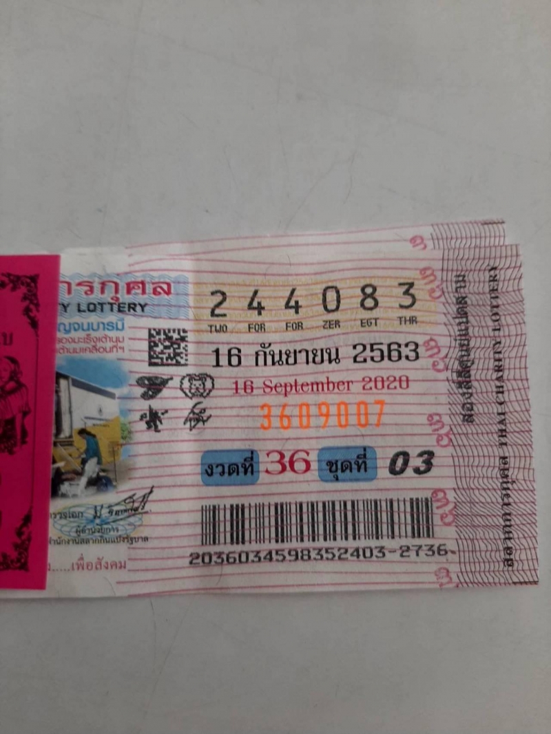 เมื่อเวลา 16.30 น.วันที่ 16 ก.ย. นางบุญสม ศรีจันทร์ อายุ 49 ปี ชาวจังหวัดนครราชสีมา เข้าพบ พ.ต.ต.ตระการ อินสว่าง สารวัตร (สอบสวน) สน.บางเขน เพื่อลงบันทึกประจำวันไว้เป็นหลักฐาน โดยนำสลากกินแบ่งรัฐบาล ประจำวันที่ 16 ก.ย. 2563 ผลสลากรางวัลที่ 1 หมายเลข 244083 จำนวน 2 ใบ จำนวนเงิน 12 ล้านบาท