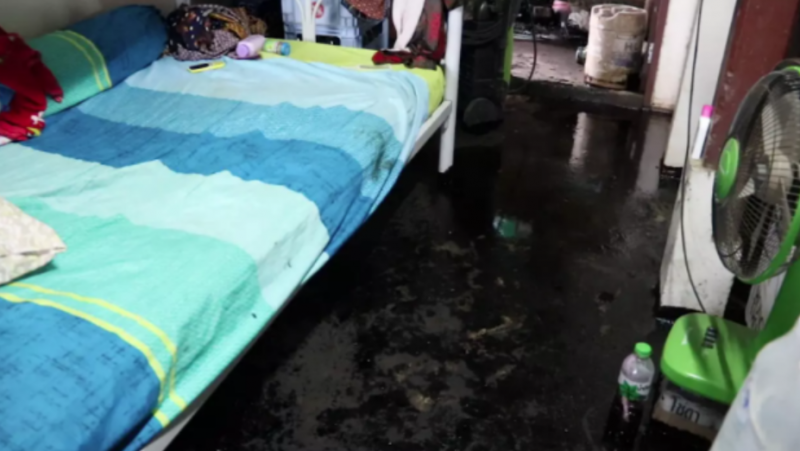 นางรุ่งอรุณ อุทก อายุ 43 ปี ภรรยาเจ้าหน้าที่การรถไฟบุรีรัมย์ บอกว่า ตนใช้บ้านพักของสามีเปิดเป็นร้านขายของชำเพื่อหารายได้พิเศษ เวลาประมาณ 05.00 น.ของวันนี้ (18 ก.ย.) เกิดฝนตกอย่างหนัก ตนเองและครอบครัวซึ่งอยู่บนบ้าน ก็ไม่ได้คิดอะไร เมื่อเดินลงมาชั้นล่าง ตกใจมาก เพราะพื้นบ้าน กลายเป็นสีดำทั้งหมด มีกลิ่นของยางมะตอยทั่วบริเวณ
