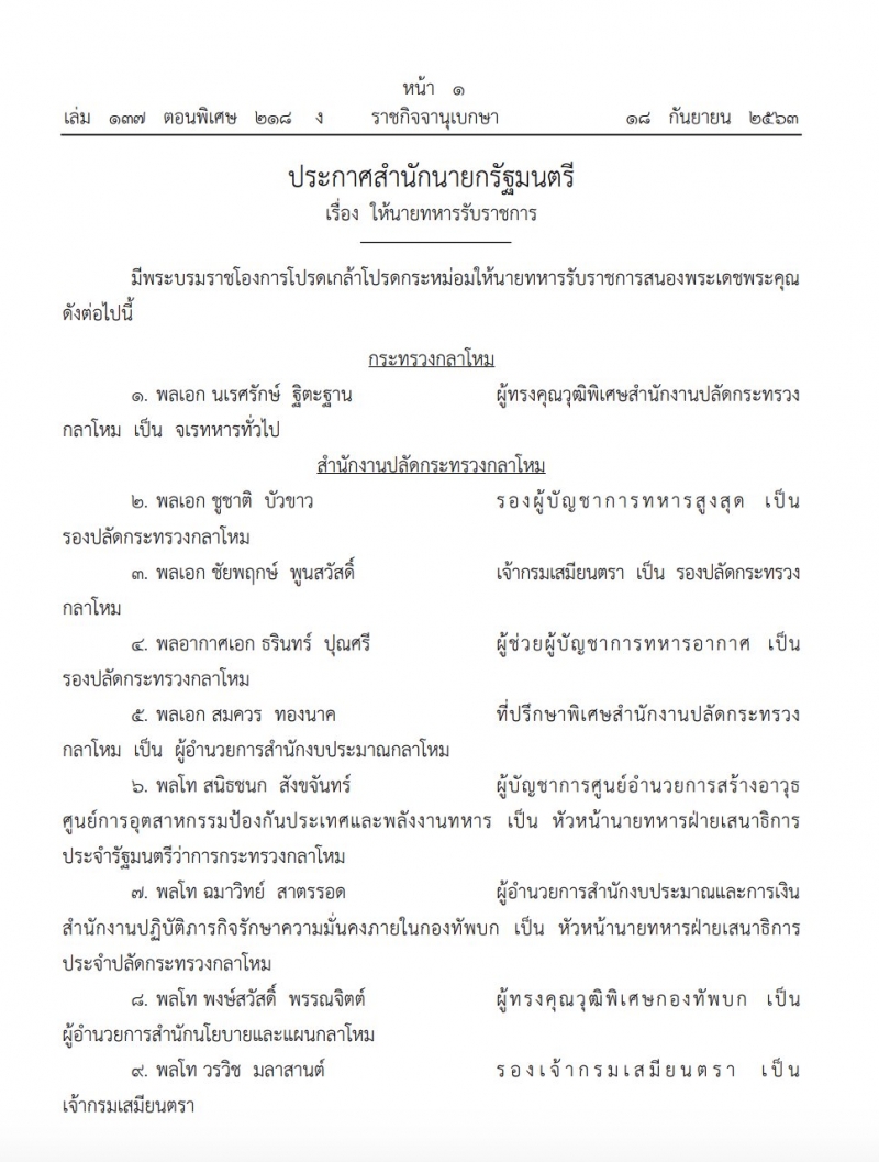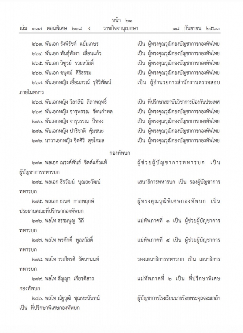 โปรดเกล้าฯ แต่งตั้ง ผบ.ทสส. ผบ.ทบ. ผบ.ทอ. ผบ.ทร. พร้อมบิ๊กทหาร 792 นาย