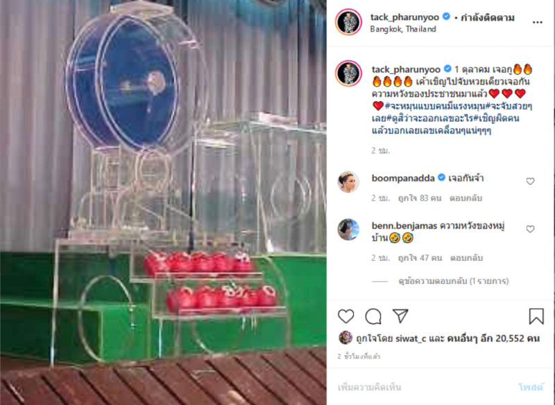 ออกไปแล้วจ้า สำหรับผลรางวัลสลากกินแบ่งรัฐบาลประจำวันที่ 16 กันยายน 63 หลายๆคนก็เฮ และเชื่อว่าอีกหลายๆคนก็ผิดหวัง ล่าสุดทำเอาแฟนคลับเข้าไปคอมเม้นท์รัวๆ หลังหนุ่ม แทค ภรัณยู ได้ออมาโพสต์ถึงผลปรกาศรางวัลสลากกินแบ่งรัฐบาลประจำวันที่ 1 ตุลาคม 63 โดยเจ้าตัวไดด้ออกมาโพสต์พร้อมระบุข้อความว่า
