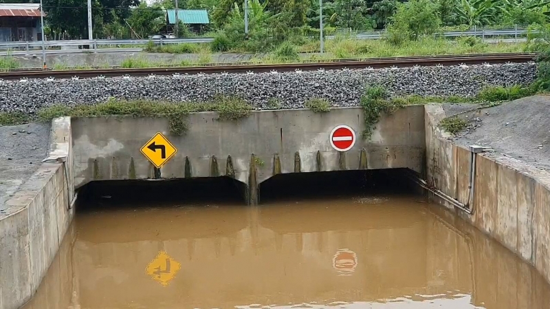 อุโมงลอดทางรถไฟ น้ำท่วม ชาวบ้านร้องหลายครั้งแล้ว แต่ไร้การแก้ไข