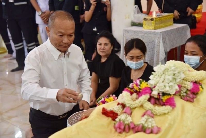 โดยมี ถั่วแระ เชิญยิ้ม บอล เชิญยิ้ม แจ๋ว(ภรรยา) และลูกๆ พร้อมด้วยเพื่อนสนิทและญาติ ท่ามกลางความโศกเศร้าเสียใจ ภรรยา ถึงกับปล่อยโฮ