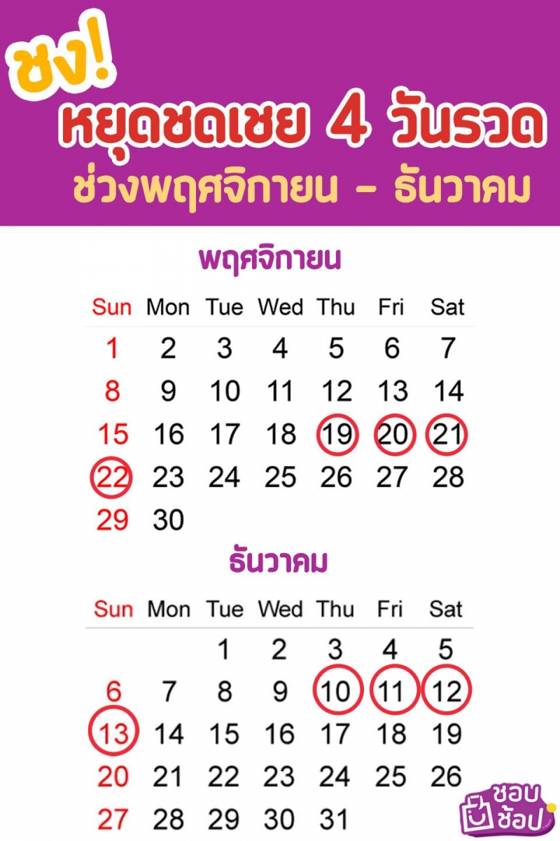 ได้วันแล้ว เปิดวันหยุด 8 วัน เดือนพ.ย.-ธ.ค. วันไหนบ้างเช็กเลย
