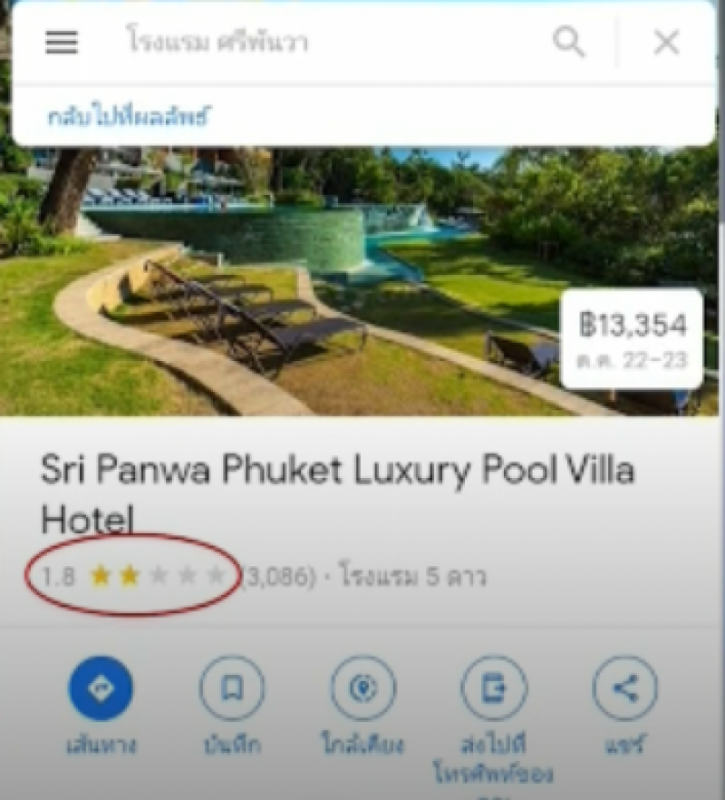 ศรีพันวา ภูเก็ต คะแนนลดฮวบ เหลือแค่ 2 ดาว