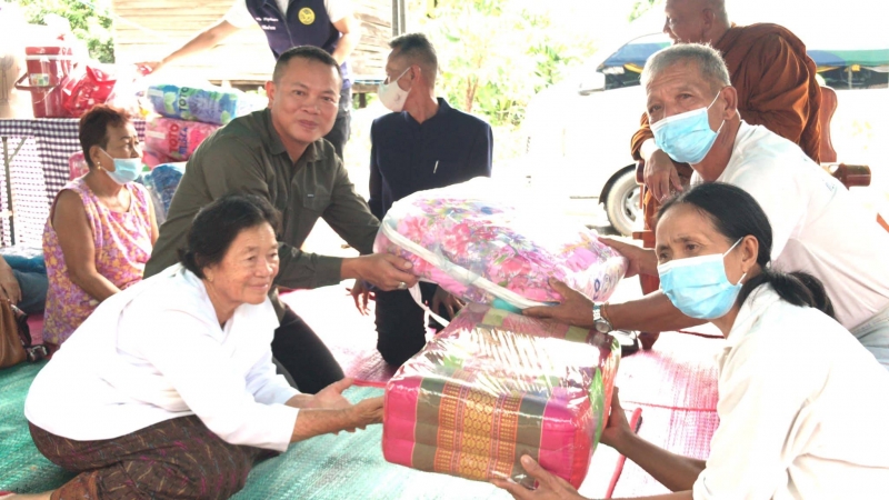 ร่วมถึงท่าน สุพิช สามารถ นายอำเภอเลิงนกทา พร้อมกำนัน ผู้ใหญ่บ้าน ตัวแทนพุทธบุตรวังน้ำทิพย์ และแขกผู้หลักผู้ใหญ่ไปร่วมมอบสิ่งของเครื่องใช้ต่างๆ มีนายตงสิทธิ์ ตั้งจตุรวิธ รองประธานมูลนิธิ ร.พ.สมเด็จพยุพระราขเลิงนกทาไปร่วมงาน ทั้งนี้บ้านเอื้ออาทรและสิ่งของต่างๆ มาจากเงินรางวัล,มาลัยหน้าเวที รวมถึงแฟนๆได้ร่วมบุญกับ "มนต์แคน"มาด้วยนั่นเอง