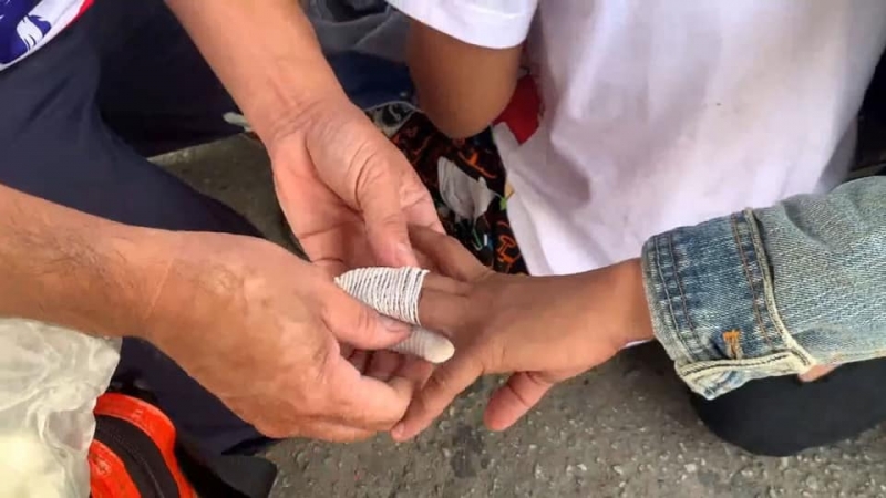ซึ่งตอนนั้นคิดว่าอาการจะสงบแล้วแต่เหตุการณ์ระทึกขวัญก็เกิดขึ้นอีกเมื่อจู่ ๆ หญิงสาวคนดังกล่าวได้วิ่งขึ้นสะพานลอยและพยามจะกระโดดลงมาด้านล่าง ที่มีรถวิ่งจำนวนมากจึงตัดสินใจวิ่งตามขึ้นมาก่อนจะคว้าตัวหญิงสาวคนดั่งกล่าวไว้ได้ทันจนนิ้วมือข้างซ้ายไปกระแทกกับราวเหล็กอย่างแรงจนได้รับบาดเจ็บ ก่อนที่ชาวบ้านจะเข้ามาช่วยเหลือ