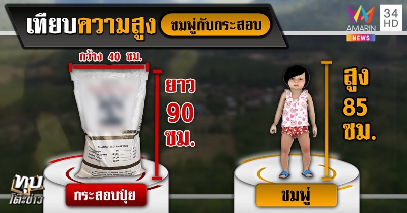 โดยกระสอบที่ก่อนหน้านี้ตำรวจได้เข้ามาที่บ้านลุงพล และได้ยึดไปตรวจสอบ เป็นกระสอบถุงปุ๋ยยี่ห้อหนึ่ง จำนวน 2 ใบ ขนาดความกว้าง 58 เซนติเมตร และยาวยาว 52 เซนติเมตร