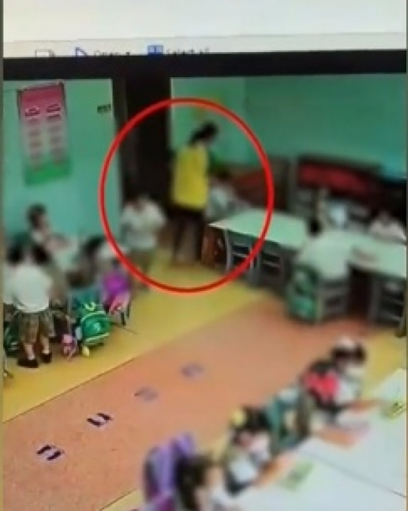 โดยเหตุการณ์ในคลิปดังกล่าวปรากฎภาพ ครูสาว ได้กระทำรุนแรงต่อเด็ก 3 ขวบ โดยน้องนั่งเรียนหนังสือเฉยๆ แต่ถูกครูดึงหูกระชากด้วยความรุนแรง จากนั้นก็ไปทำกับเด็กคนอื่นอีกที่เป็นผู้หญิง กดหัวเด็กไว้ที่โต๊ะหลายครั้งแล้วก็ ทำอย่างต่อเนื่องกับเด็กคนอื่นไปเรื่อยๆ นอกจากนี้ยังมีทั้งการลากเด็กไปมากับพื้นไปฟาดกำแพง ผลักเด็กล้มทั้งยืน โดยที่สังเกตเห็นได้ชัดว่าเด็กตกใจกลัวอย่างหนัก ซึ่งจากกรณีดังกล่าวส่งผลให้ในโลกโซเชียลมีการแชร์คลิปพฤติกรรมของครู ที่ทำกับเด็ก 3 ขวบ อย่างแพร่หลาย