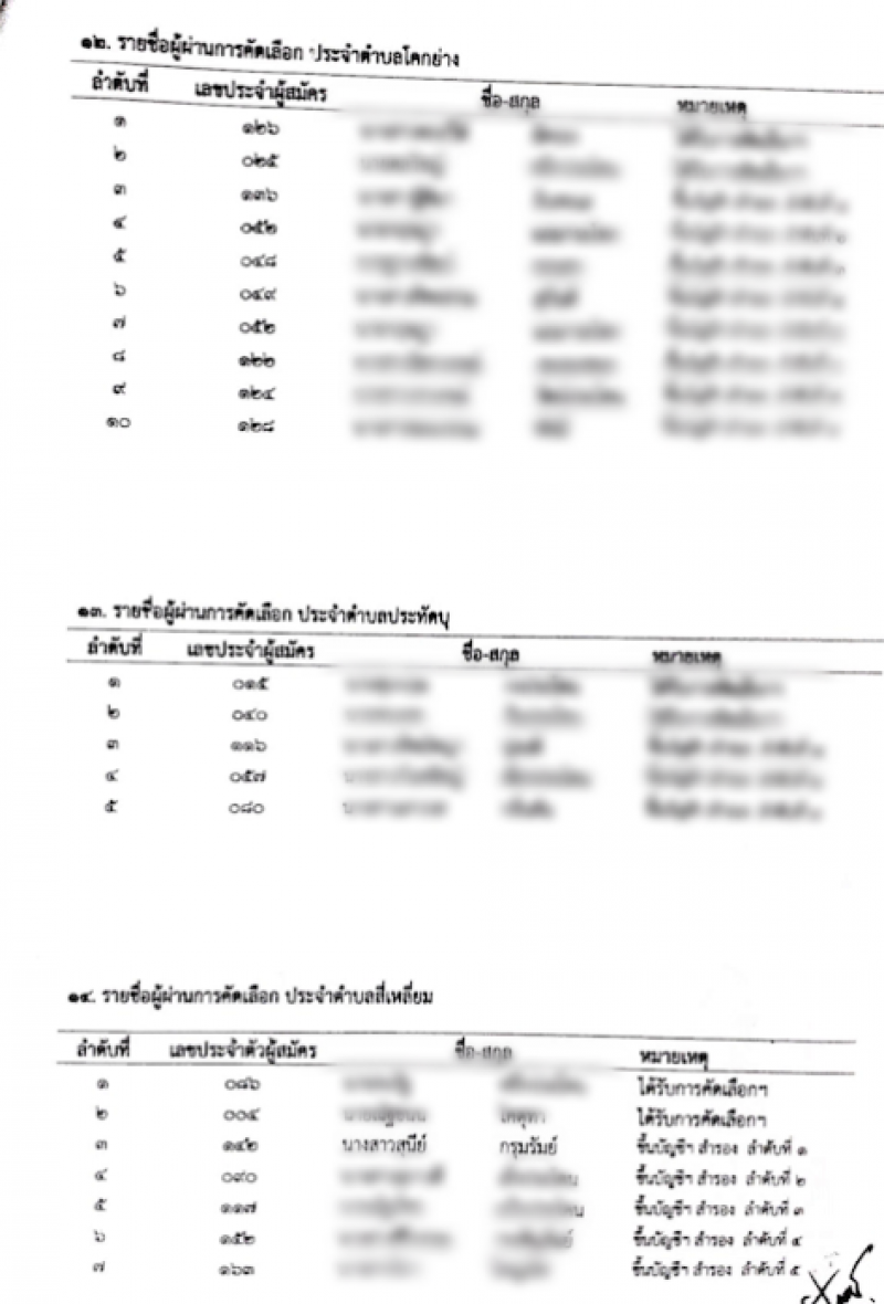 โดยเฉพาะกฎข้อบังคับที่ว่า ถ้าไม่มีผู้สมัครหรือสมัครไม่ครบตามจำนวนที่ต้องการ ให้เรียกลำดับสำรองจากตำบลใกล้เคียงมาทดแทน แต่รายชื่อปริศนาที่ปรากฏอยู่ต.ประโคนชัย ซึ่งห่างจากต.สี่เหลี่ยม ที่ตนอยู่ถึง 27 กิโลเมตร เบื้องต้นตรวจสอบแล้วมีรายชื่อปริศนาเข้าไปอยู่ในรายชื่อผู้สอบได้ลำดับแรกและลำดับที่ 2 แล้ว 4 ตำบล