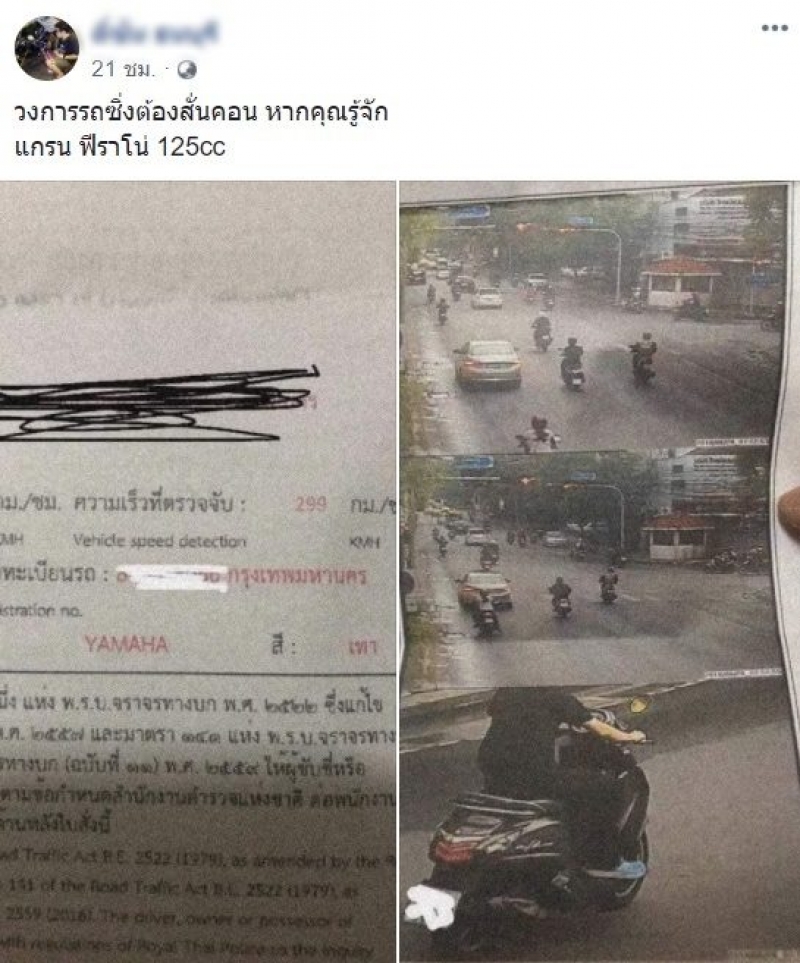 เมื่อวันที่ 29 ก.ย. ผู้ใช้เฟซบุ๊กรายหนึ่ง โพสต์ข้อความระบุว่า วงการรถซิ่งต้องสั่นคลอน หากคุณรู้จัก แกรน ฟีลาโน่ 125cc พร้อมภาพใบสั่งจราจร ซึ่งระบุว่า ความเร็วที่ตรวจจับอยู่ที่ 299 กิโลเมตรต่อชั่วโมง