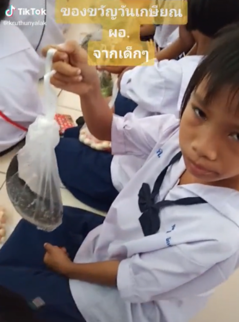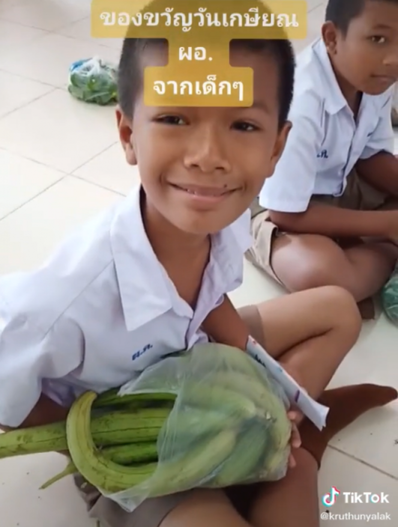 เป็นเรื่องราวที่น่ารักมากๆสำหรับนักเรียนและคุณครู ที่นักเรียนต่างก็นำของขวัญมามอบให้ ผอ ในวันเกษียน เมื่อวันที่ 29 กย 63 ผู้ใช้ ติ๊กตอก ชื่อว่า kruthunyalak ได้โพสต์คลิปวีดีโอระบุว่า เด็ ก ๆให้ด้วยใจ เรียกได้ว่าของที่นักเรียนนำมาให้ใครเห็นก็อดยิ้มไม่ได้ เพราะไม่ต้องเป็นของที่มีค่าราคาแพง แต่มีคุณค่าทางใจมากๆ
