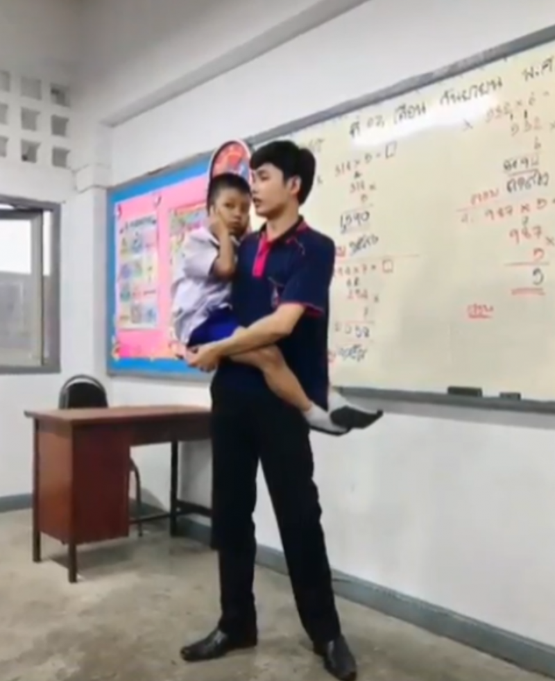 เรียกได้ว่าเป็นอีกหนึ่งภาพน่ารักๆ ที่ได้รับเสียงชื่นชมในโลกออนไลน์ เมื่อผู้ใช้เฟซบุ๊กท่านหนึ่ง ได้มีการโพสต์คลิปภาพ คุณครูที่กำลังอุ้มนักเรียนไปด้วย พร้อมกับสอนไปด้วย โดยทราบว่าน้องนักเรียนคนนี้ กลัวเสียงฟ้าร้อง คุณครูก็เลยต้องอุ้มปลอบเอาไว้ นักเรียนก็เอามืออุดหูไปด้วย กลายเป็นโมเม้นต์สุดน่ารัก ที่ใครเป็นแล้วก็อดยิ้มไม่ได้