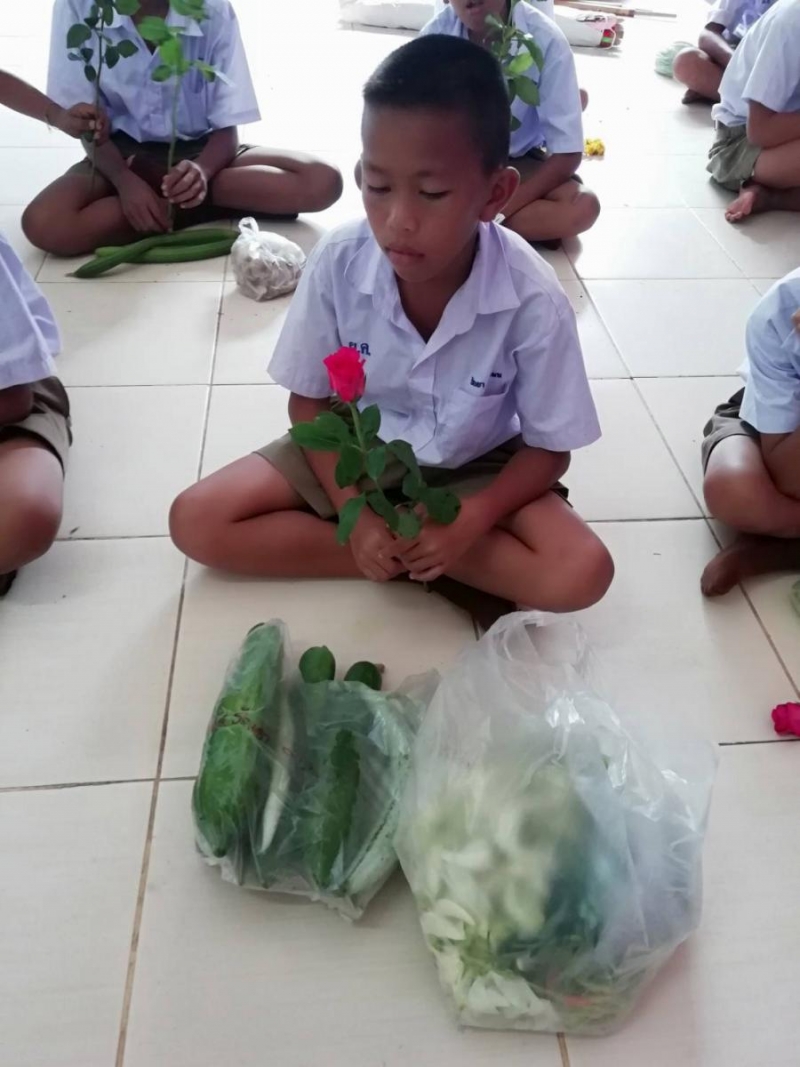 ซึ่งเนื่องจากว่า หมู่บ้านแห่งนี้เป็นหมู่บ้านเศรษฐกิจพอเพียง จึงมีการปลูกพืชผักสวนครัวทุกหลังคาเรือน ดังนั้น ลูก ๆ นักเรียน จึงได้นำเอาผลิตผลทางการเกษตรที่มีอยู่ในบ้าน เช่น มะละกอ ผักกาด บวบ มะเขือ มะขามดอง กล้วย มามอบให้กับ ผอ.ร.ร.ที่เกษียณอายุราชการ เพื่อเป็นการแสดงความขอบคุณและแสดงความรักความผูกพันกับ ผอ.ร.ร.ในครั้งนี้ เป็นภาพที่น่ารักมากในการจัดกิจกรรมครั้งนี้