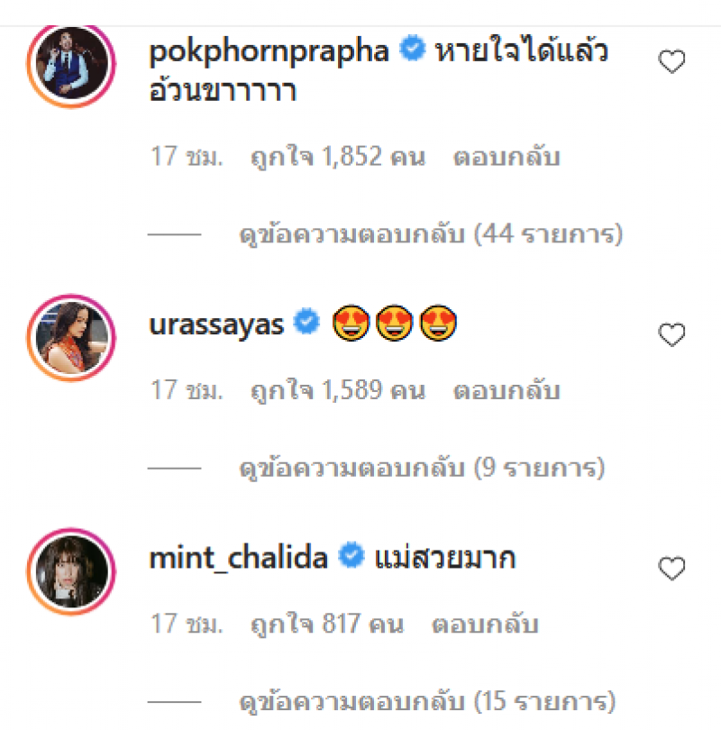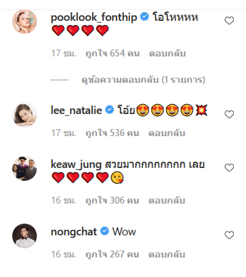 หลังจากที่สาวอั้มโพสต์ไปไม่นานทางด้านไฮโซพก ก็ได้รีบมาแสดงความคิดเห็นแซวสาวอั้มอย่างเร็วเลยค่ะ พร้อมทั้งแฟนๆและเพื่อนดาราก็ได้แสดงความคิดเห็นกันอย่งมากมายเลยทีเดียวค่ะ