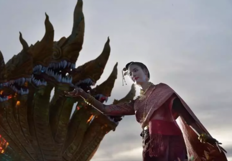 โบว์ เมลดา นำนางรำกว่าพันคนรำบวงสรวงบูชาพญานาค ริมแม่น้ำโขง
