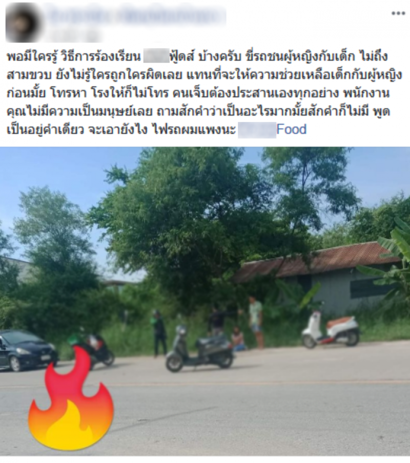 วิจารณ์สนั่น หนุ่มพนักงานส่งอาหารชื่อดัง ขับรถชนกับผู้หญิงและเด็ก ไม่ห่วงคน ลั่น ไฟรถผมแพงนะ