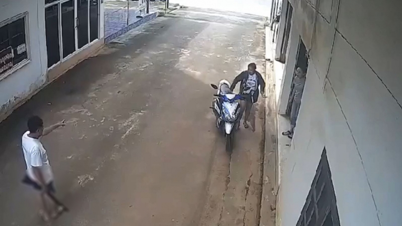 ชายคนหนึ่งสวมเสื้อสีขาว กางเกงขาสั้น ถืออาวุธปืนลูกกรดยาวมาด้วย 1 กระบอก ทราบชื่อว่า นายสมพงษ์ อายุประมาณ 57 ปี เป็นข้าราชการหน่วยงานราชการแห่งหนึ่งในจังหวัดตราด เดินมาที่ร้านของตนพร้อมกับตะโกนด่าทอ และพูดว่าใครให้มาจอดรถตรงนี้ ใครมาจอดอีกเจอดีแน่ ซึ่งตอนนั้นตน กำลังให้บริการลูกค้าอยู่ภายในร้าน ทำให้ลูกค้าตกใจจนพากันขี่รถจักรยานยนต์ออกจากที่เกิดเหตุไป