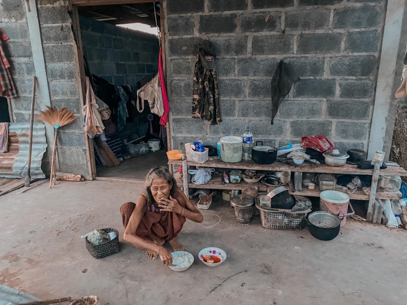 เวลาแป้งกลับบ้านที่บ้านนอก จะซื้อหมากพลู ผลไม้ ขนม ฝากแกให้ได้กินตลอด เพราะบ้านไกล้เคียงกัน อะไรที่ช่วยได้ แป้งช่วยตลอด เพราะคือมนุษย์โลกด้วยกัน คุณยายตาฝ้าฟาง มองไม่ค่อยเห็นแล้วค่ะ แถมความทรงจำก็เลอะเลือน เพราะแก่ตัวลงทุกวัน