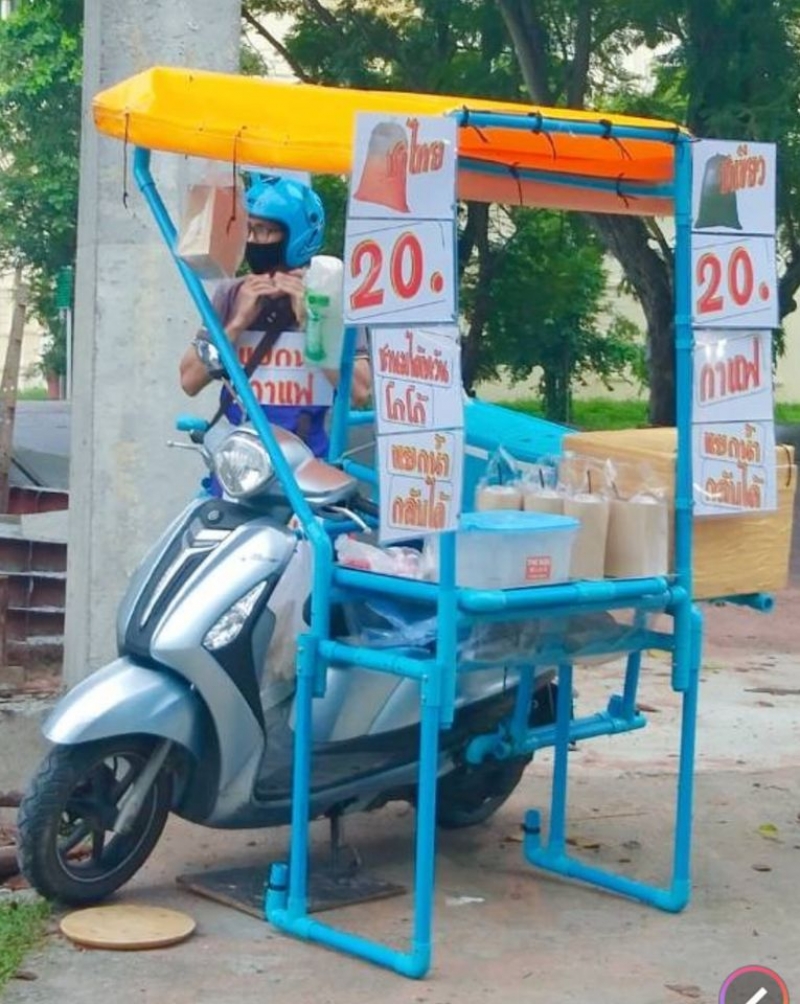 เรียกได้ว่าเป็นอีกหนึ่งภาพ ที่ได้รับเสียงชื่นชมเป็นอย่างมาก วันที่ 9 ตุลาคม ผู้สื่อข่าวรายงานว่า ในโลกออนไลน์ ได้มีผู้ใช้เฟซบุ๊กท่านหนึ่ง โพสต์ภาพหนุ่มไอเดียสุดเจ๋ง นำท่อพีวีซี มาต่อกันเข้ากับรถ จยย จนกลายเป็นร้านขายเครื่องดื่ม ถือได้ว่าเป็นอีกหนึ่งตัวอย่างสำหรับใครที่กำลังท้อ แถมยังลงทุนน้อย ไม่ต้องซื้อแฟรนไชส์ราคาแพงๆอีกด้วย