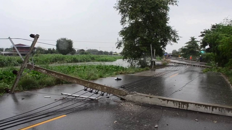 กระบะไปงานทอดกฐิน เสียหลัก ไปชนเสาไฟฟ้าล้ม 8 ต้น