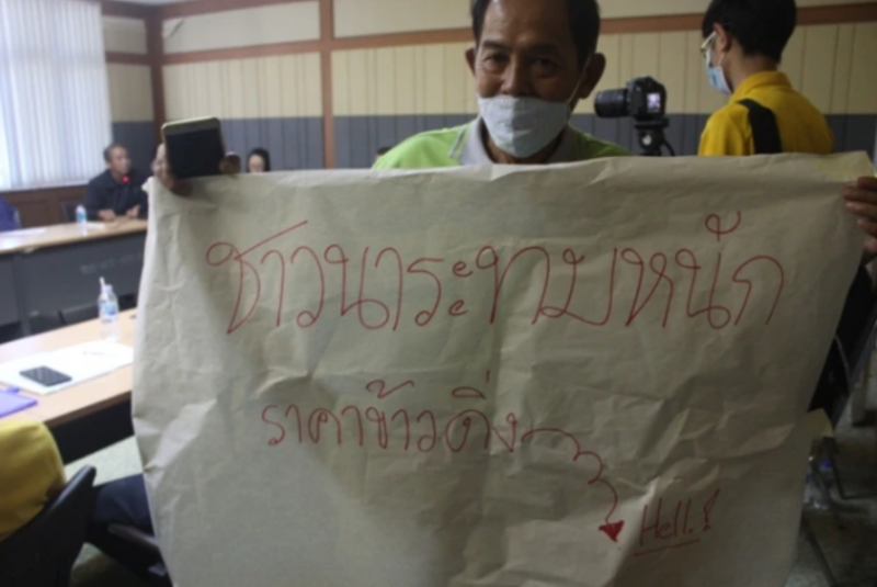 นายกฤษณะ คำปุก ผู้แทนเกษตรกรระดับตำบล อ.พาน กล่าวว่าปัจจุบันชาวนามีต้นทุนในการทำนาเฉลี่ยกิโลกรัมละ 6 บาท ดังนั้นเมื่อถูกรับซื้อในราคาเดียวกันก็เหมือนขาดทุนตั้งแต่ยังไม่ได้ขาย และพบว่าเมื่อประมาณ 1 สัปดาห์ก่อนราคาข้าวจะซื้อขายกันในกิโลกรัมละ 14 บาท