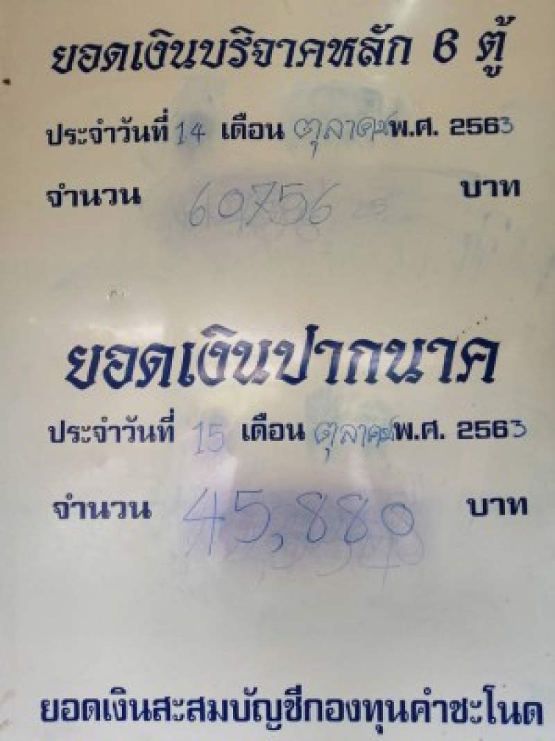 ทั้งนี้ มีรายงานว่ายอดเงินบริจาคปากนาค เป็นเงินจำนวน 45,880 บาท ยอดเงินบริจาคหลักทั้ง 6 ตู้ 60,756 บาท