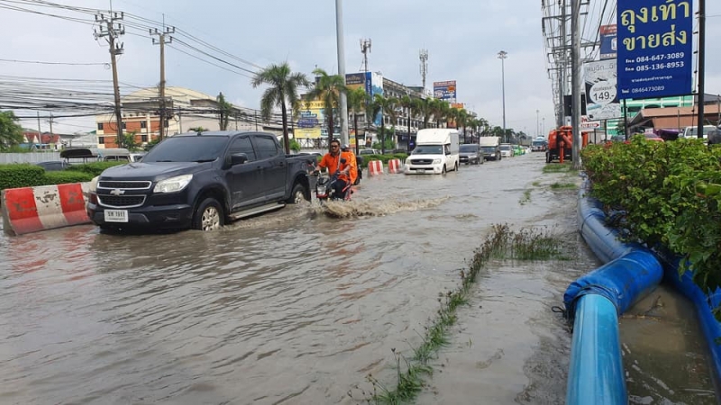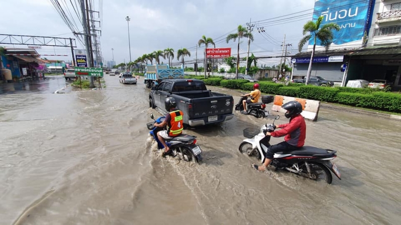 ฝนกระหน่ำเมืองปากน้ำ สมุทรปราการ การจราจรติดขัด