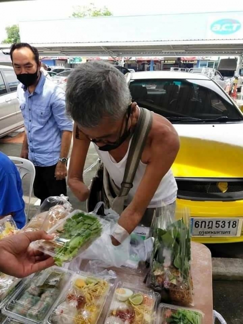 คุณลุงแขนพิการ ไม่ท้อลุกขึ้นสู้ แบกข้าวกล่องตั้งขาย