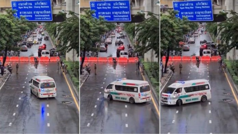 วันที่ 17 ต.ค. จากกรณีโลกออนไลน์แชร์คลิปวิดีโอ ที่ถ่ายจากบริเวณก่อนถึงอนุสาวรีย์ชัยสมรภูมิ มีการปิดถนน โดยเจ้าหน้าที่ตำรวจได้นำแบริเออร์มาตั้งขวางถนนไว้ ต่อมามีรถฉุกเฉินของโรงพยาบาลแห่งหนึ่งขับเข้ามา แต่ต้องถอยรถกลับเพราะไม่สามารถผ่านแบริเออร์เข้าไปได้